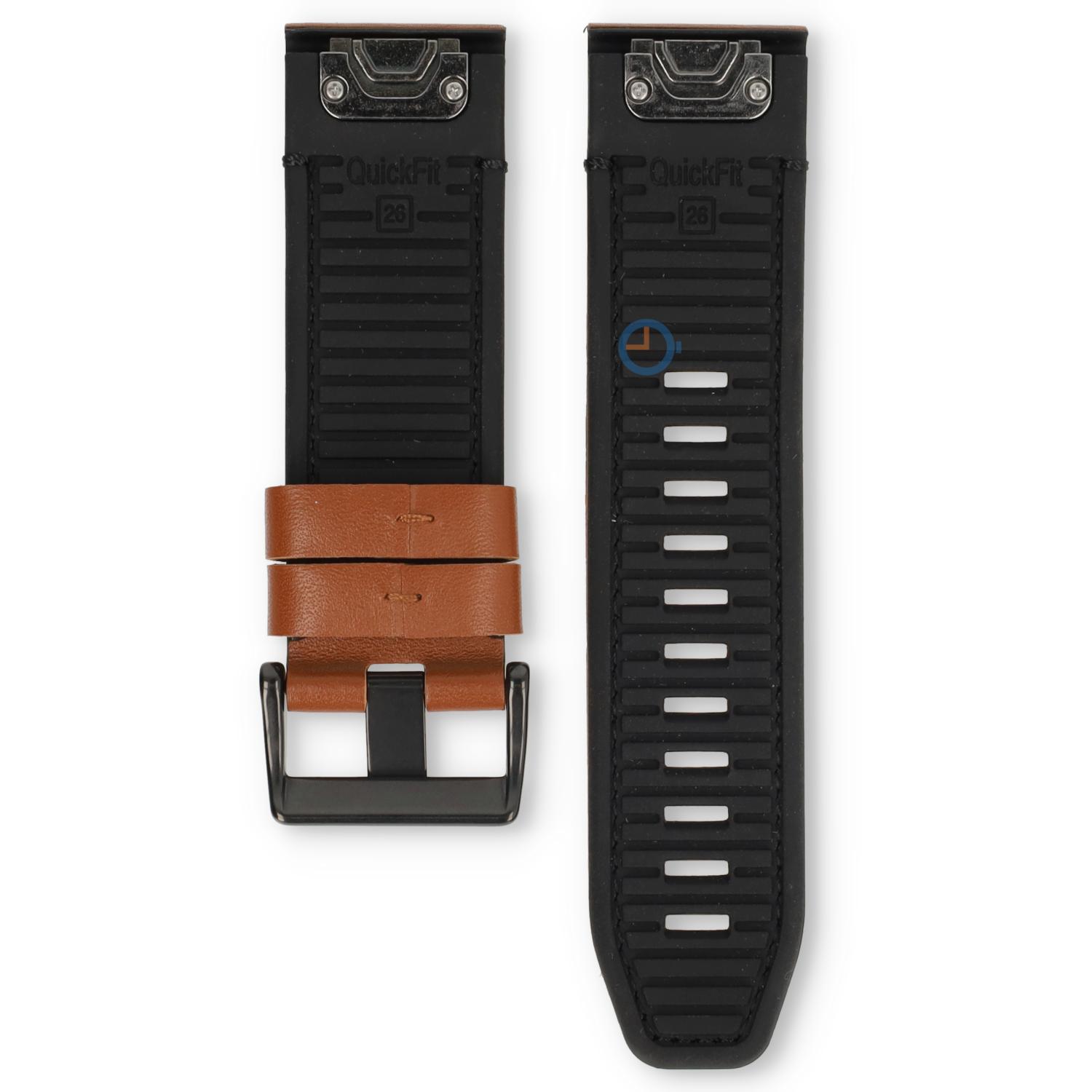 Premium 26mm Armband - leer/Silikon - cognac/schwarz