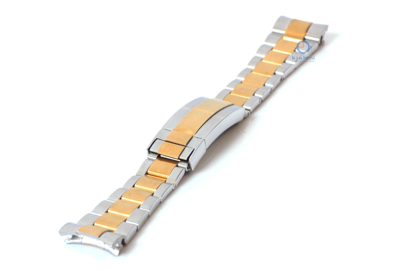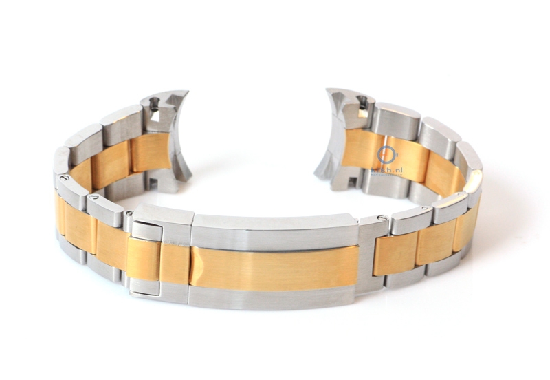 Uhrenarmband 21mm Mailänder silber/gold. Dieses Mailänder Armband ist hergestellt aus guter Qualität geflochtenem Stahl. So verleihen Sie Ihre Armbanduhr einen klassischen, aber auch coolen Look. Das Uhrenarmband wird geschlossen mit eine verstellbare Schließe, dadurch ist dieses Uhrenarmband geeigent für verschiedene Handgelenksgrößen.