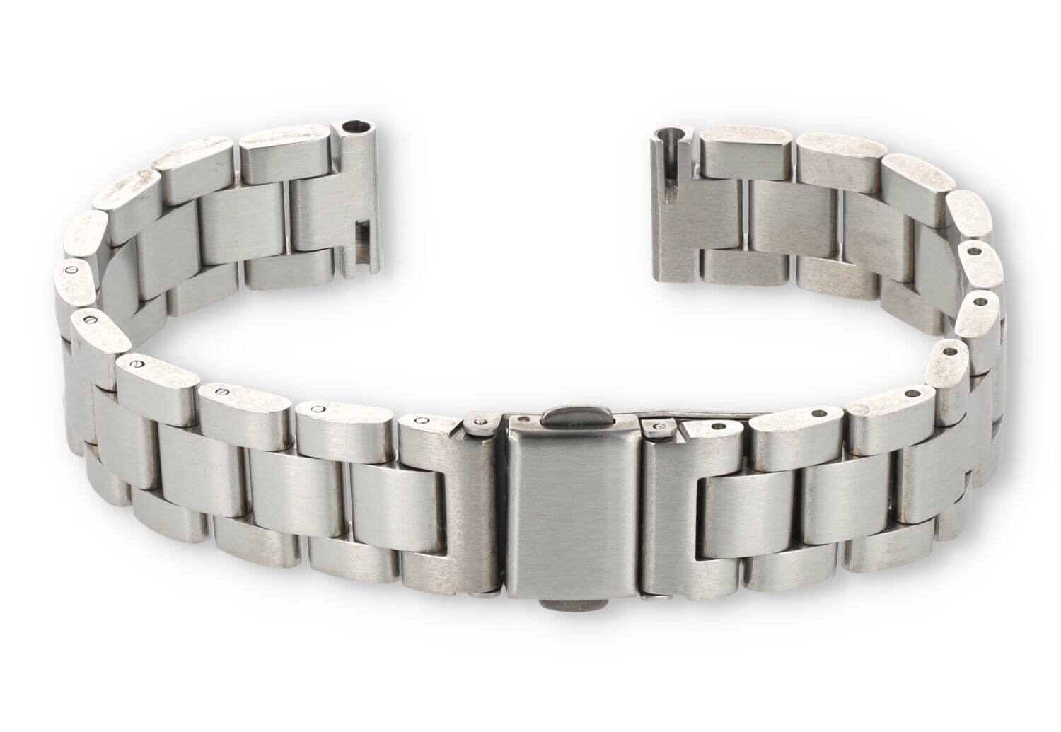 14mm massives Stahlarmband in der Farbe: Silber. Das Band wird mit Schnellwechselstiften geliefert, so dass Sie es im Handumdrehen und ohne Werkzeug an Ihrer Uhr befestigen können. Das Band ist 170mm lang und kann um 10 Glieder " 8mm gekürzt werden.