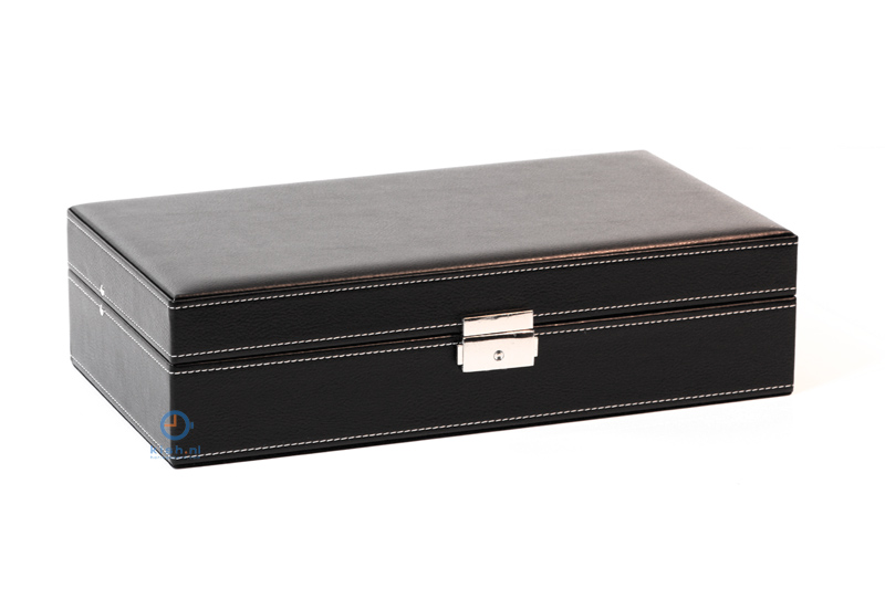 Schwarze Leder Uhrenbox für 10 Uhren. Diese Design Uhrenbox bietet Platz für 10 Uhren. Jede Uhr wird in einem eigenem Fach aufbewahrt, so dass die Uhren sich nicht gegenseitig beschädigen können.