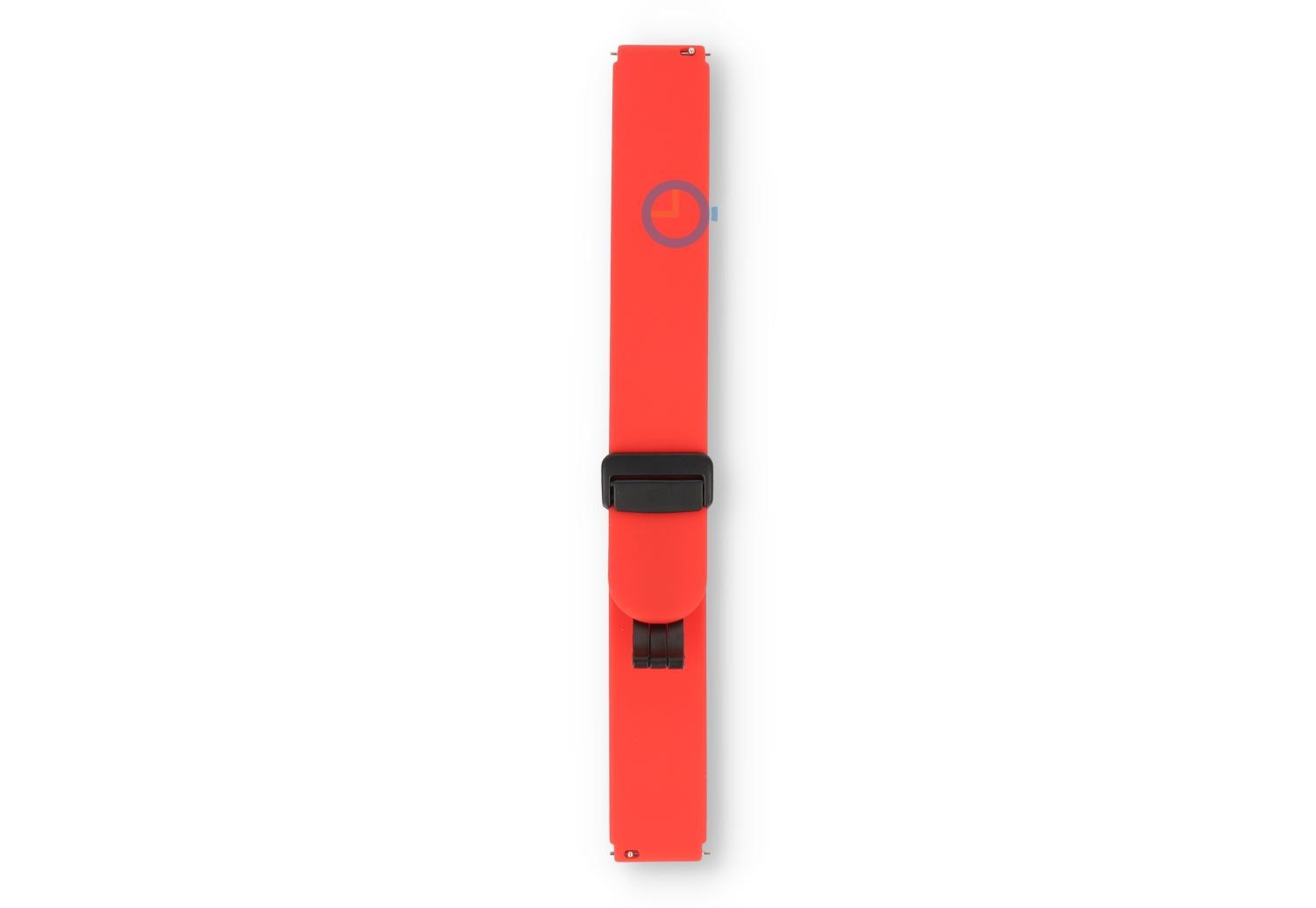 Schnellwechselendes Band - 16mm - rot. Finden Sie den perfekten Match und wählen Sie aus vielen neuen farbigen Bänder. Dieses Uhrenarmband von 16mm, hergestellt auf flexibelen und nachhaltigem Silikon, macht Ihre Uhr direkt Sportproof auf eine stilvolle Art. Perfekt für sportliche Aktivitäten und tägliche Nutzung, das Band tragen Sie auf verschiedenen Größen - perfektes Band für dünne Handgelenke. Da das Uhrenarmband eine sichere verstellbare Magnetfaltschließe hat, haben brauchen Sie kein Tool mehr, um die Größe einzustellen. Nicht nur einfach, aber auch schnell.