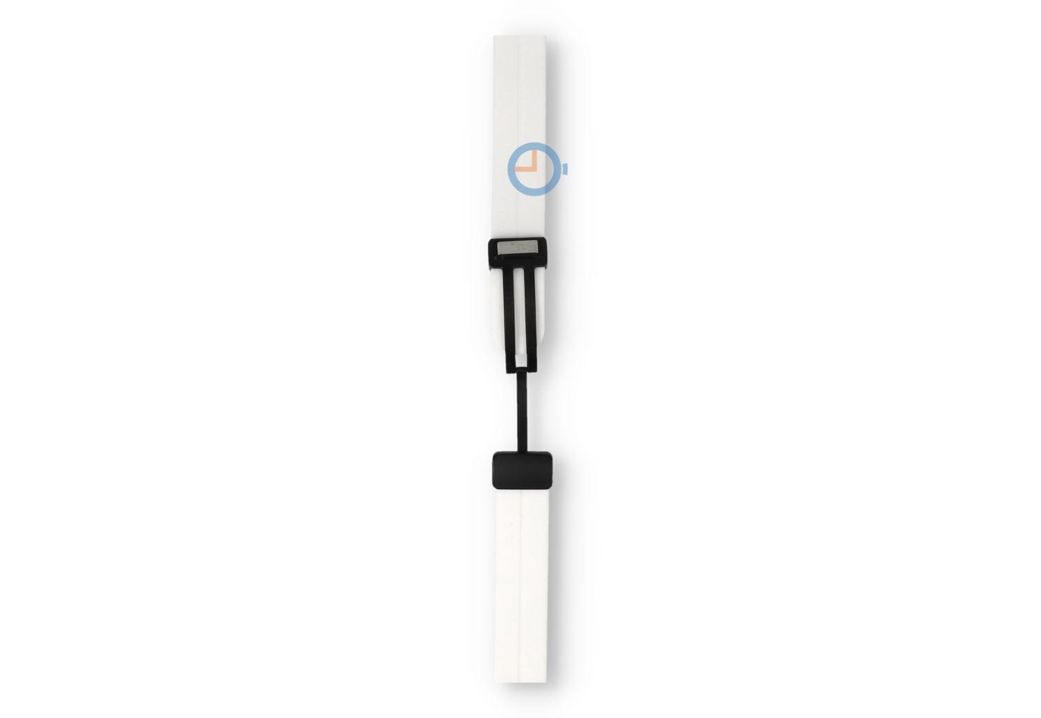 Schnellwechselendes Band - 16mm - weiß. Finden Sie den perfekten Match und wählen Sie aus vielen neuen farbigen Bänder. Dieses Uhrenarmband von 16mm, hergestellt auf flexibelen und nachhaltigem Silikon, macht Ihre Uhr direkt Sportproof auf eine stilvolle Art. Perfekt für sportliche Aktivitäten und tägliche Nutzung, das Band tragen Sie auf verschiedenen Größen - perfektes Band für dünne Handgelenke. Da das Uhrenarmband eine sichere verstellbare Magnetfaltschließe hat, haben brauchen Sie kein Tool mehr, um die Größe einzustellen. Nicht nur einfach, aber auch schnell.