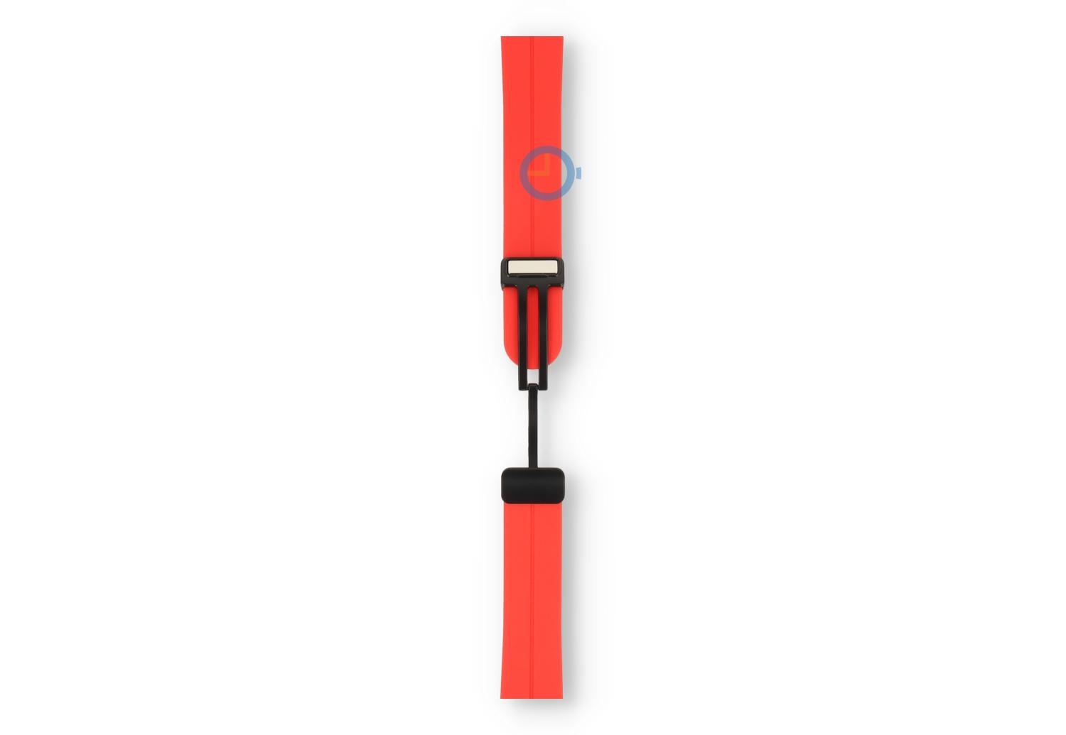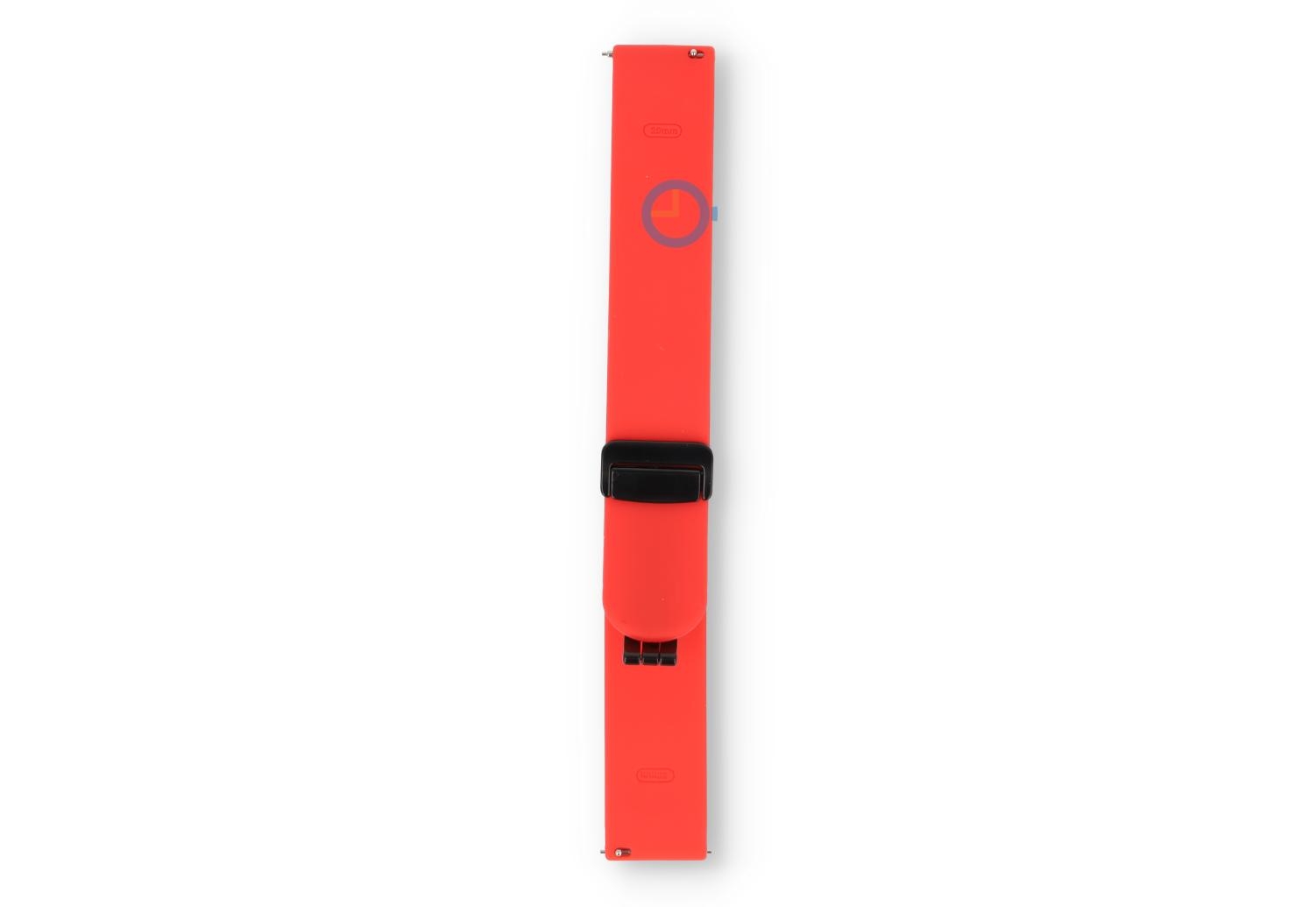 Uhrenarmband mit Schnellwechsel-System - 20mm - rot. Finden Sie den perfekten Match und wählen Sie aus vielen neuen farbigen Bänder. Dieses Uhrenarmband von 20mm, hergestellt auf flexibelen und nachhaltigem Silikon, macht Ihre Uhr direkt Sportproof auf eine stilvolle Art. Perfekt für sportliche Aktivitäten und tägliche Nutzung, das Band tragen Sie auf verschiedenen Größen - perfektes Band für dünne Handgelenke. Da das Uhrenarmband eine sichere verstellbare Magnetfaltschließe hat, haben brauchen Sie kein Tool mehr, um die Größe einzustellen. Nicht nur einfach, aber auch schnell.