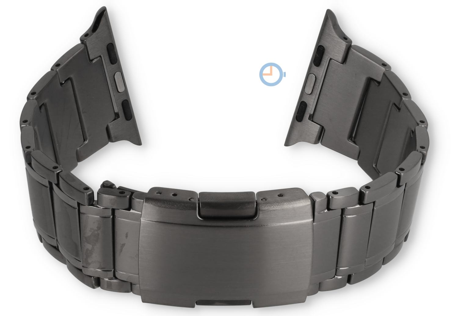 Titan Uhrenarmband für Apple Watch 44 t/m 49mm | Mattdunkelgrau mit Glanzdetail | Dieses Titan Uhrenarmband ist speziell entwickelt für die größeren Apple Watch Modelle (44, 45, 46 und 49mm). Hergestellt aus leichtem Titan mit Stahl Stiften. Die matten Glieder werden minimal betont durch den polierten Linien an den Seiten.