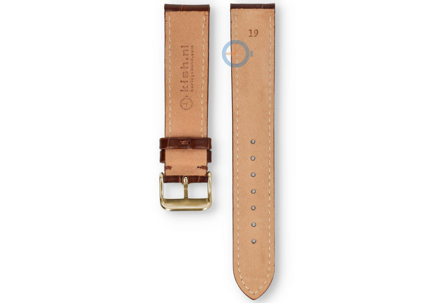 19mm Uhrenarmband aus Kroko Leder - dunkelbraun. Dieses Uhrenarmband hat eine ungerade Größe: 19mm. Kommt nicht oft vor und dadurch sehr schwer zu finden. Uhrenarmbandshop.de hat inzwischen ein ziemliches Sortiment in ungeraden Größen. So auch dieses schöne Leder Armband. Das Leder ist matt und hat eine coole weiße Naht. Die golden Dornschließe ist hochglanz und wird montiert mitgeliefert.