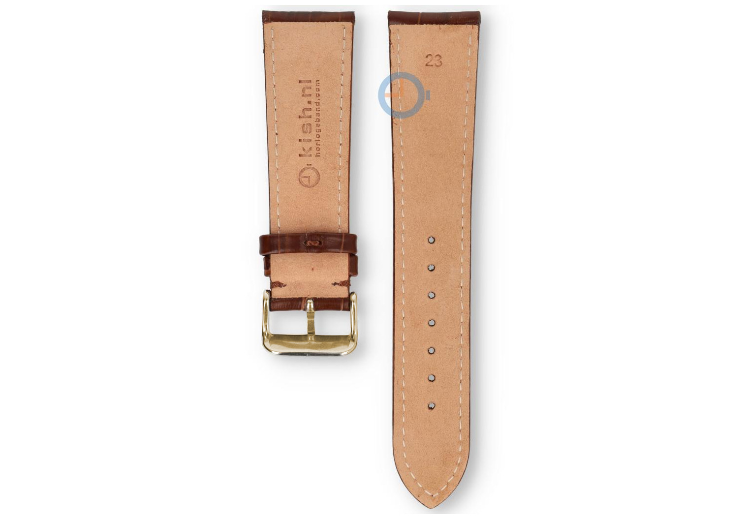 23mm Uhrenarmband aus Kroko Leder - dunkelbraun. Dieses Uhrenarmband hat eine ungerade Größe: 23mm. Kommt nicht oft vor und dadurch sehr schwer zu finden. Uhrenarmbandshop.de hat inzwischen ein ziemliches Sortiment in ungeraden Größen. So auch dieses schöne Leder Armband. Das Leder ist matt und hat eine coole weiße Naht. Die golden Dornschließe ist hochglanz und wird montiert mitgeliefert.