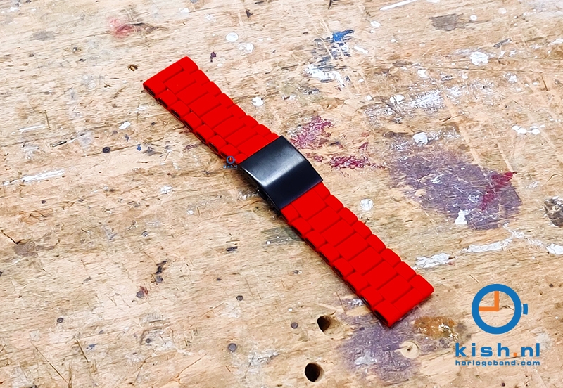 Universelles Uhrenarmband für die Diesel Mr Daddy 2.0 Uhren. Dieses Edelstahlarmband verfügt über eine obere Schicht aus rotem Silikon und wird mithilfe von Federstegen (Spring Bars) an der Uhr befestigt. Das Uhrenarmband hat einen geraden Bandanstoß, wodurch es auch für andere Uhren passend ist.
