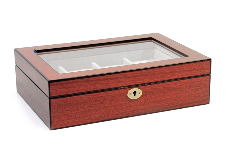 Diese kompakte Uhrenbox hat Platz für 8 große Armbanduhren und ist super verarbeitet. Diese wunderschöne Cherry Farbe ist mit einem matten Lack bearbeitet, dadurch bekommt diese Box eine stilvolle Ausstrahlung.Auch können Sie die Box sehr gut verschließen mit dem Schloss, welches mit 2 Schlrüssel geliefert wird.